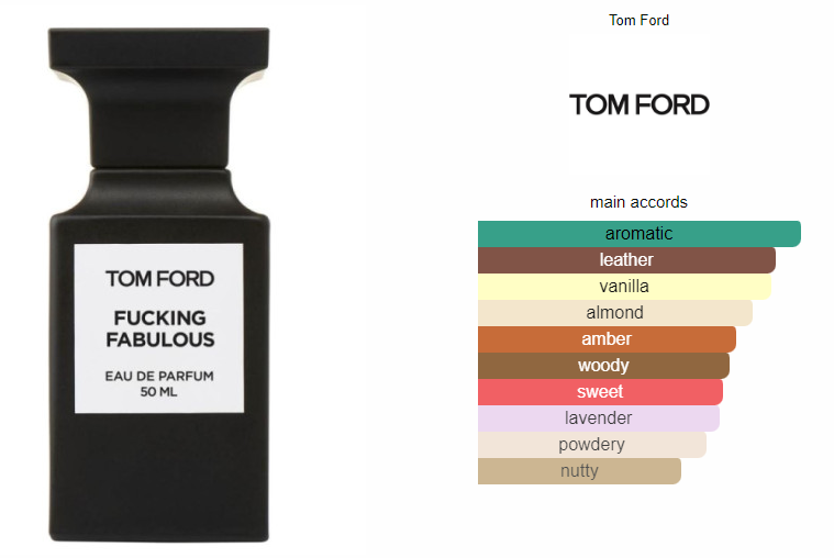 Fucking Fabulous by Tom Ford is a Leather fragrance for women and men. Fucking Fabulous was launched in 2017. Top notes are Lavender and Clary Sage; middle notes are Leather, Bitter Almond, Vanilla and Orris; base notes are Leather, Tonka Bean, Cashmeran, White Woods and Amber.
