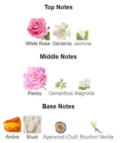 White Oud was created as a pure, complex and elegant fragrances which blends beautiful flowers with a warm woody-oriental trail. The initial notes offer a blend of white roses, fresh jasmine and gardenia, enriched with sweet osmanthus, along with a floral veil of peony and magnolia. The base of the composition unites precious oud with bourbon vanilla, amber and sensual musk.
